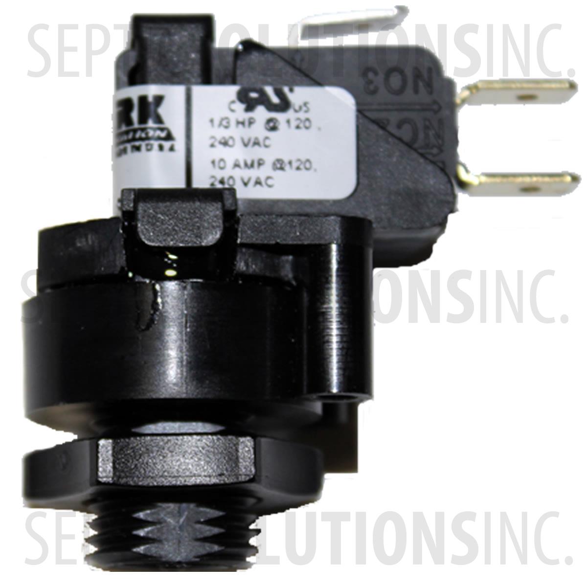 PrintPressure switch designed to be mounted inside an alarm box or control panel with the hose barb mounted externally. Allows for a 1/8'' hose connection. Monitors the pressure level of the air pump, if it drops below 1 PSI, the switch will activate the alarm.