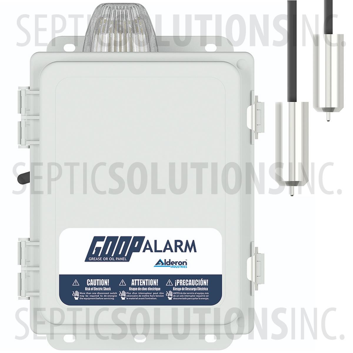 The Alderon Industries GOOP Alarm is a universal grease and oil detection alarm specifically designed for grease traps, oil/water separators, and interceptor tanks.