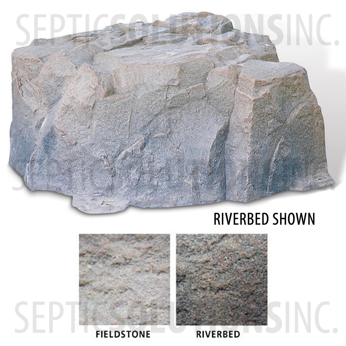 This rock is taller and round shape for larger septic applications. Can cover septic lids up to 30'' in diameter. This rock can make your yard look more natural and appealing! Comes complete with yard stakes. Available in Riverbed and Fieldstone.